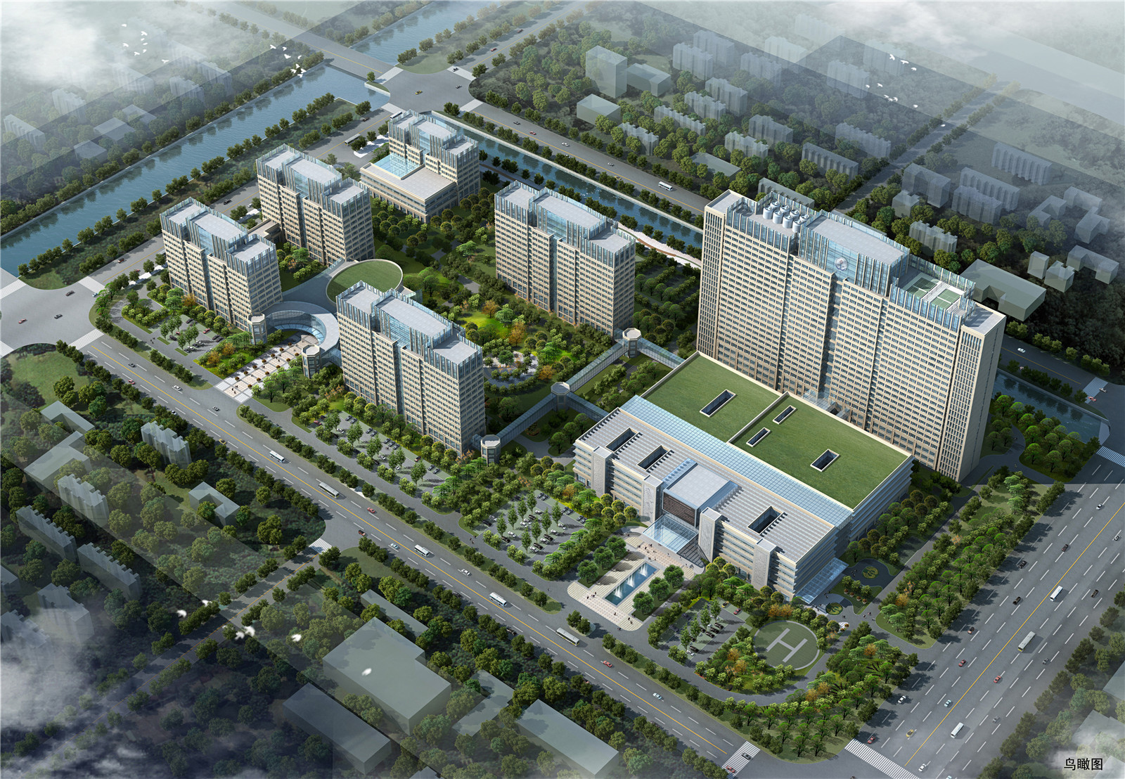 泰州市人民醫(yī)院周山河新院總建筑面積約為30萬平方米,總規(guī)劃床位2500床??傮w規(guī)劃采用院落式布局,圍繞中央大庭院,周邊設(shè)置了多層次的室內(nèi)外庭院,將陽光和空氣引入建筑,營造了多層次的景觀環(huán)境。為診室空間爭取了自然采光,又加大了診區(qū)間的間距,避免了交叉感染的機(jī)率。地下空間采用半開放式設(shè)計(jì),通過采光井引入自然光。門急診部、醫(yī)技部與住院部自南向北依次排開,以“醫(yī)療主軸”中心串聯(lián),各功能空間由“醫(yī)療主軸”有機(jī)聯(lián)系,達(dá)成分而不離的效果。四層通高大空間設(shè)計(jì)的“醫(yī)療主軸”和“醫(yī)療街”相互交織,室內(nèi)空間通透、開敞、明亮,與室外的庭院空間相互滲透,共同構(gòu)成了綠色的、流動(dòng)的就診空間。
