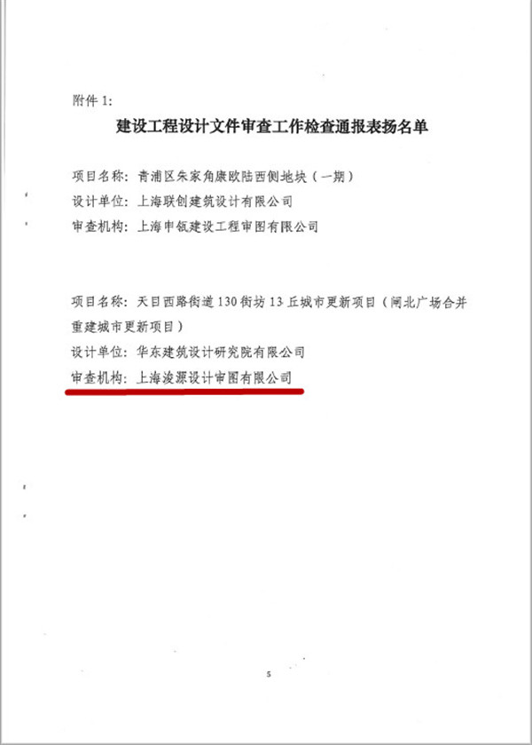 2018年7月和11月,市審查中心分兩次組織開展了區(qū)、特定地區(qū)管委會建設(shè)工程總計設(shè)計文件征詢工作及征詢意見落實情況檢查,并對兩個項目的設(shè)計和審查單位進(jìn)行了公開通報表揚(yáng)(《滬設(shè)審發(fā)[2019]1號》文件)。上海浚源設(shè)計審圖有限公司有幸在此列!