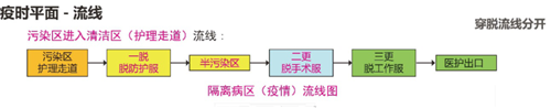 2、 醫(yī)務(wù)人員從污染區(qū)進(jìn)入清潔區(qū)也進(jìn)行了三次更衣。第一次為醫(yī)務(wù)人員從污染區(qū)進(jìn)入治療準(zhǔn)備區(qū)(半污染區(qū))的通過(guò)式更衣,細(xì)分為洗手、二脫防護(hù)服、一脫隔離服、緩沖,然后進(jìn)入治療準(zhǔn)備區(qū)(半污染區(qū))的通過(guò)式更衣。第二次更衣為從半污染區(qū)回到清潔區(qū)的通過(guò)式更衣,細(xì)分為二次換鞋,淋浴更衣(脫手術(shù)服)、一次更衣,然后回到醫(yī)務(wù)人員生活區(qū)。第三次更衣為從清潔區(qū)離開(kāi)醫(yī)院,在醫(yī)務(wù)人員生活區(qū)更衣間換回生活服裝后離院。