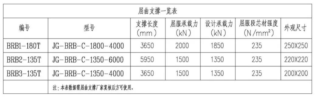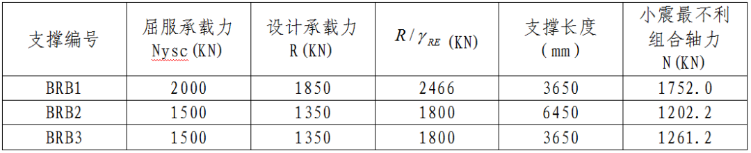 本工程屈曲約束支撐的選型為:JG-BRB-C-1800-4000,JG-BRB-C-1350-6000,JG-BRB-C-1350-4000,參數(shù)如下: