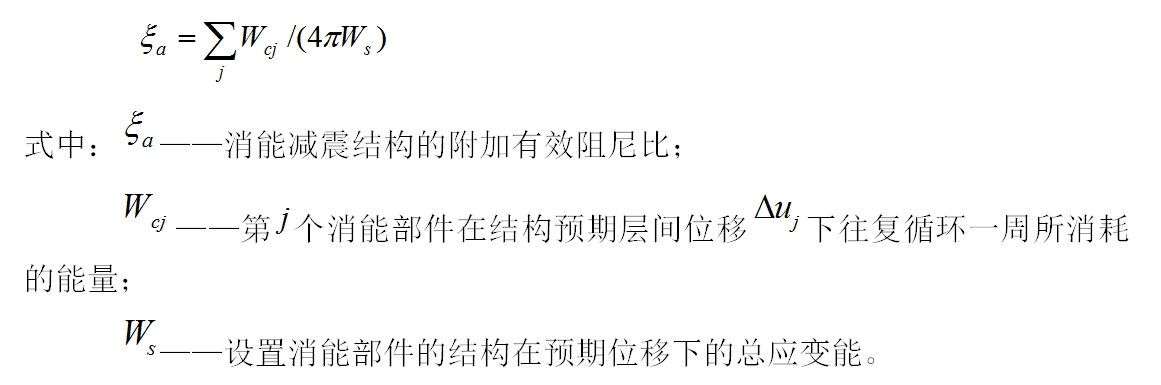 消能部件附加給結(jié)構(gòu)的有效阻尼比可按下式估算:
